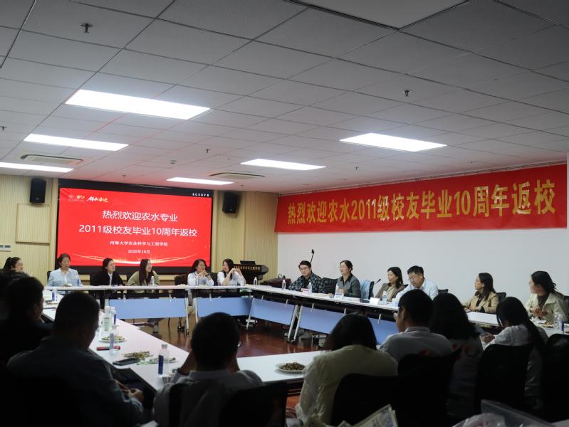 10月25日,学院农水专业2011级20余名校友满怀对母校的眷恋和感恩,重返母校,在江宁校区行政楼401举办毕业10周年返校座谈会。学院院长徐俊增以及时任2011级辅导员和班导师的刘金凤、国洪梅、郝树荣等老师出席了此次座谈会。座谈会由2011级农水专业栾雅珺主持。