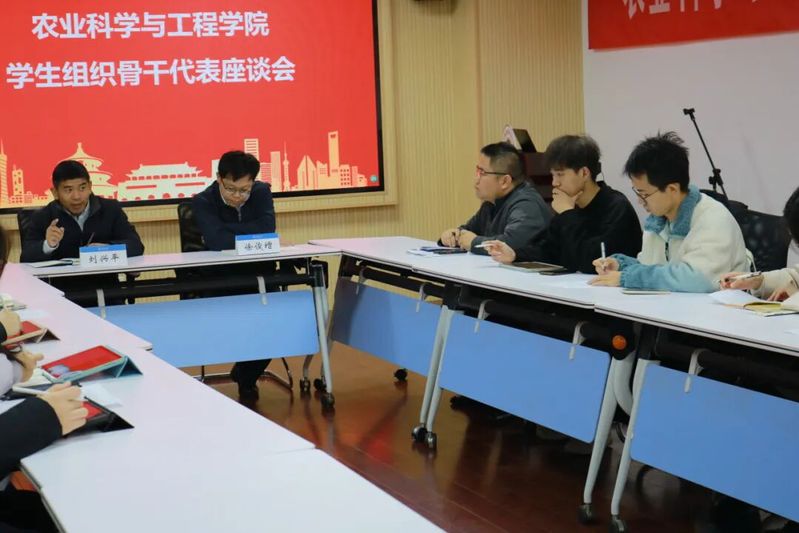 为推动学院学生组织的创新发展,促进学生干部的持续成长,2024年12月6日,农业科学与工程学院于行政楼401举办学生组织骨干代表座谈会,学院党委书记刘兴平、院长徐俊增、团委书记李健及各学生组织骨干代表参与本次会议。