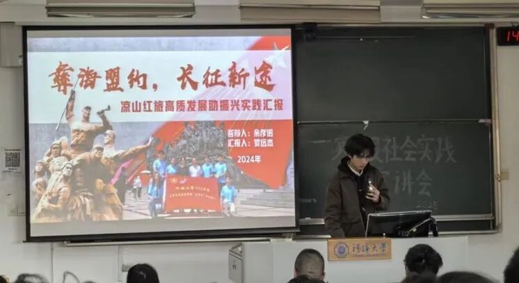 动员会上,包峻安与郭怀之两位同学先后分享了他们团队开展 “源泉工程”活动的实践经验,黎远杰同学分享了他们团队与彝海村相遇的故事,他们从前期的策划安排到正式实践内容等方面给出了具体建议,帮助同学们更全面系统地了解寒假社会实践的具体内容与重要意义,为同学们后续参与社会实践活动提供了积极参考。