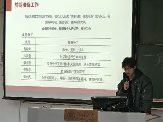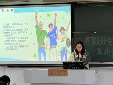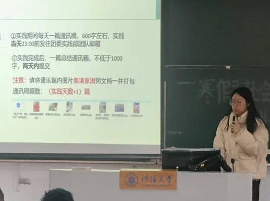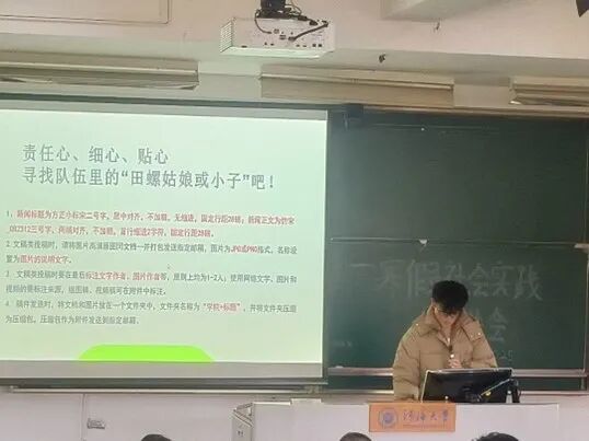 接着,实践部胡晓璐和马羽行同学向同学们讲解了本次寒假社会实践的要求与流程,着重强调了材料提交要求,并进行了通讯稿撰写培训,鼓励同学们在活动中展现河海学子昂扬向上的精神风貌,努力争先评优,给实践活动画上一个完美的句号。