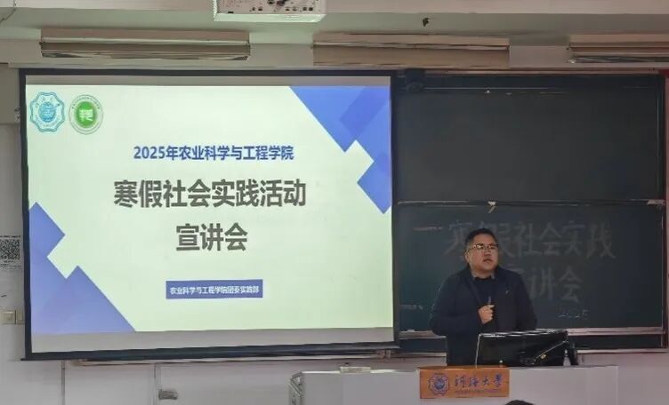 近日,农业科学与工程学院2025年寒假社会实践动员大会于江宁校区顺利举办,学院团委书记李健老师、院团委实践部负责同学和100余名拟参加寒假社会实践活动的本科生同学参加本次大会。本次动员会还邀请到三位社会实践成绩优秀的学生代表分享经验,大会由24级本科生刘一帆同学主持。
