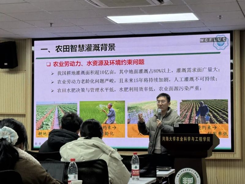 河海大学顾哲副教授以《农田智慧灌排系统与关键技术》为题,与清华学子开展交流。顾教授从农田智慧灌溉的背景、系统架构、感知-决策-执行技术体系、发展与展望四个方面进行了详细而精彩的介绍。