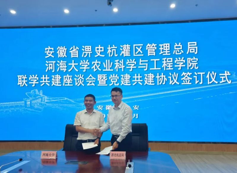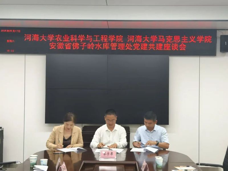 随后,农业科学与工程学院党委书记刘兴平、马克思主义学院党委副书记、副院长李宁、安徽省佛子岭水库管理处防汛抗旱办公室主任田向忠三方在与会人员的共同见证下签署了党建共建协议。