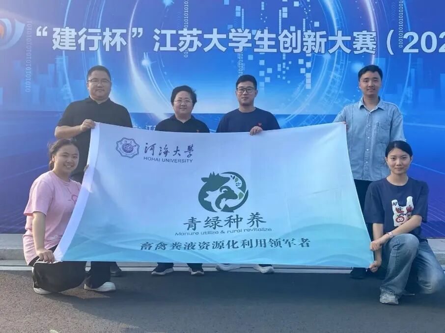 由毛欣宇、朱成立、王策、沈菊琴、孙付华老师指导,段正宇、张晓晓、余彦诺、赵瑞、殷骏等同学共同完成的《青绿种养——净化畜禽粪液 躬行乡村振兴》入围江苏大学生创新大赛(2025)决赛,获江苏省红旅赛道创意组一等奖。