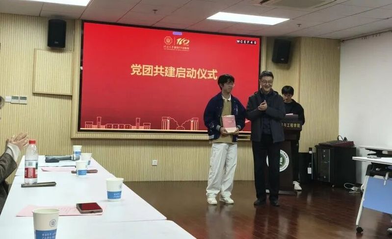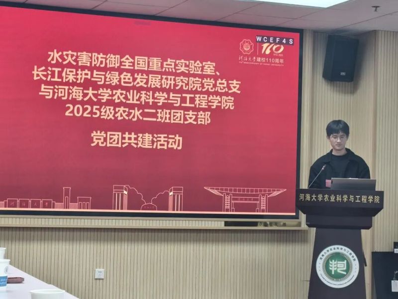 现场还举行了水灾害防御全国重点实验室、长江保护与绿色发展研究院党总支与农工院2025级农水二班团支部党团共建的启动仪式,曹翀书记向支部学生代表赠书。