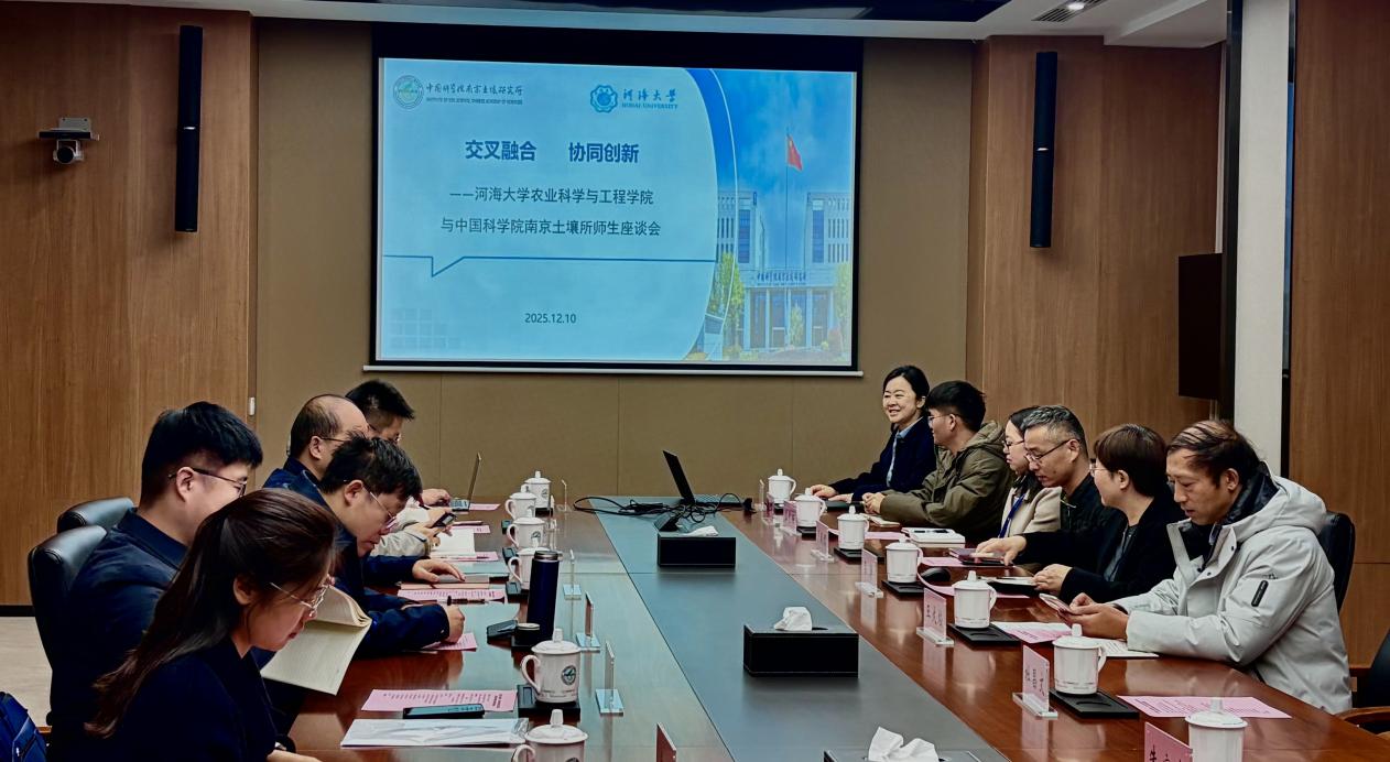 为深化科研合作、提升联合培养质量,12月10日,河海大学农业科学与工程学院与中国科学院南京土壤所师生座谈会在土壤所109会议室顺利召开。河海大学农业科学与工程学院院长徐俊增、副院长曾文治、副院长佘冬立等学院领导及联培生导师,南京学院教学培养部部长吕静、土壤所研究生处处长等领导及联培生师生代表齐聚一堂,共商人才培养与科研合作新路径。座谈会由南京土壤研究所研究生处副处长孙瑞娟主持。