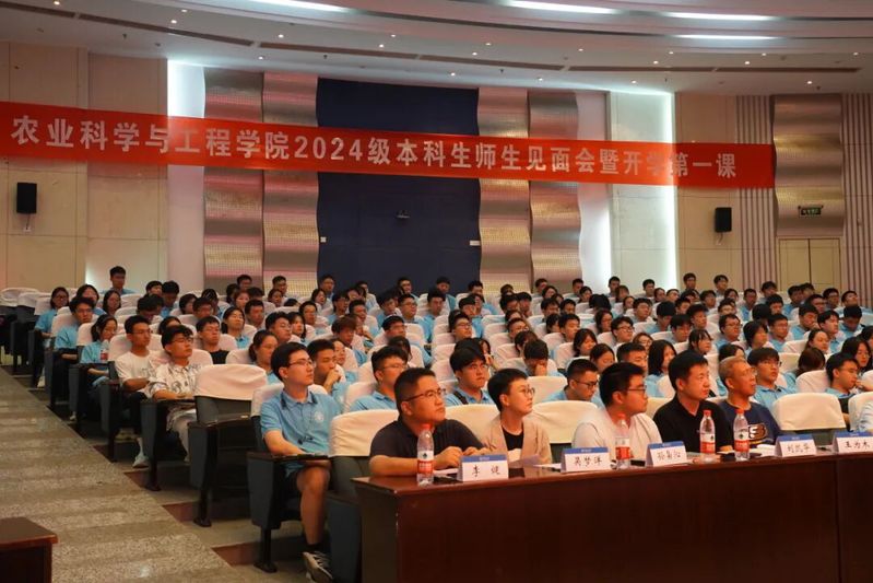 9月10日下午,农业科学与工程学院于江宁会议中心隆重举行2024级本科生师生见面会暨开学第一课,学院党委书记刘兴平、院长徐俊增、副院长张洁、副院长佘冬立、院实验中心主任王为木、2024级各班班导师及辅导员参加了师生见面会。师生见面会由院党委副书记郑润主持。