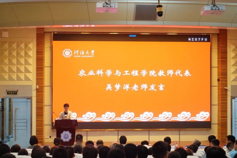 学院教师代表、2024级农水4班班导师吴梦洋老师发言。她希望新生珍惜学习机会,探索兴趣和潜力,不断提升自我;大学生不仅要追求学业成功,更要注重全面发展,思考个人成长和人生目标。鼓励新生保持谦虚,勇敢面对挑战,坚定走向未来,在大学中收获知识和友谊。