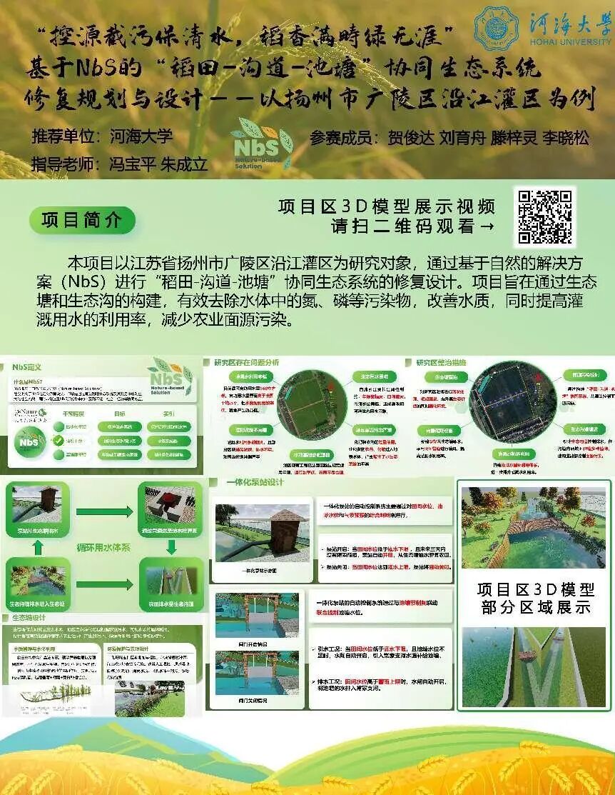 特等奖作品1:控源截污保清水 稻香满畴绿无涯 ——基于NbS的稻田沟道池塘协同生态系统修复规划与设计
