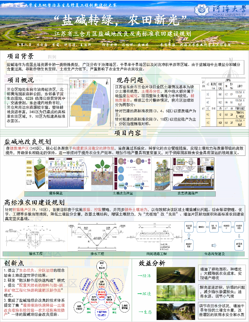 特等奖作品2:“盐碱转绿,农田新光“——江苏省三仓片区盐碱地改良及高标准农田建设规划